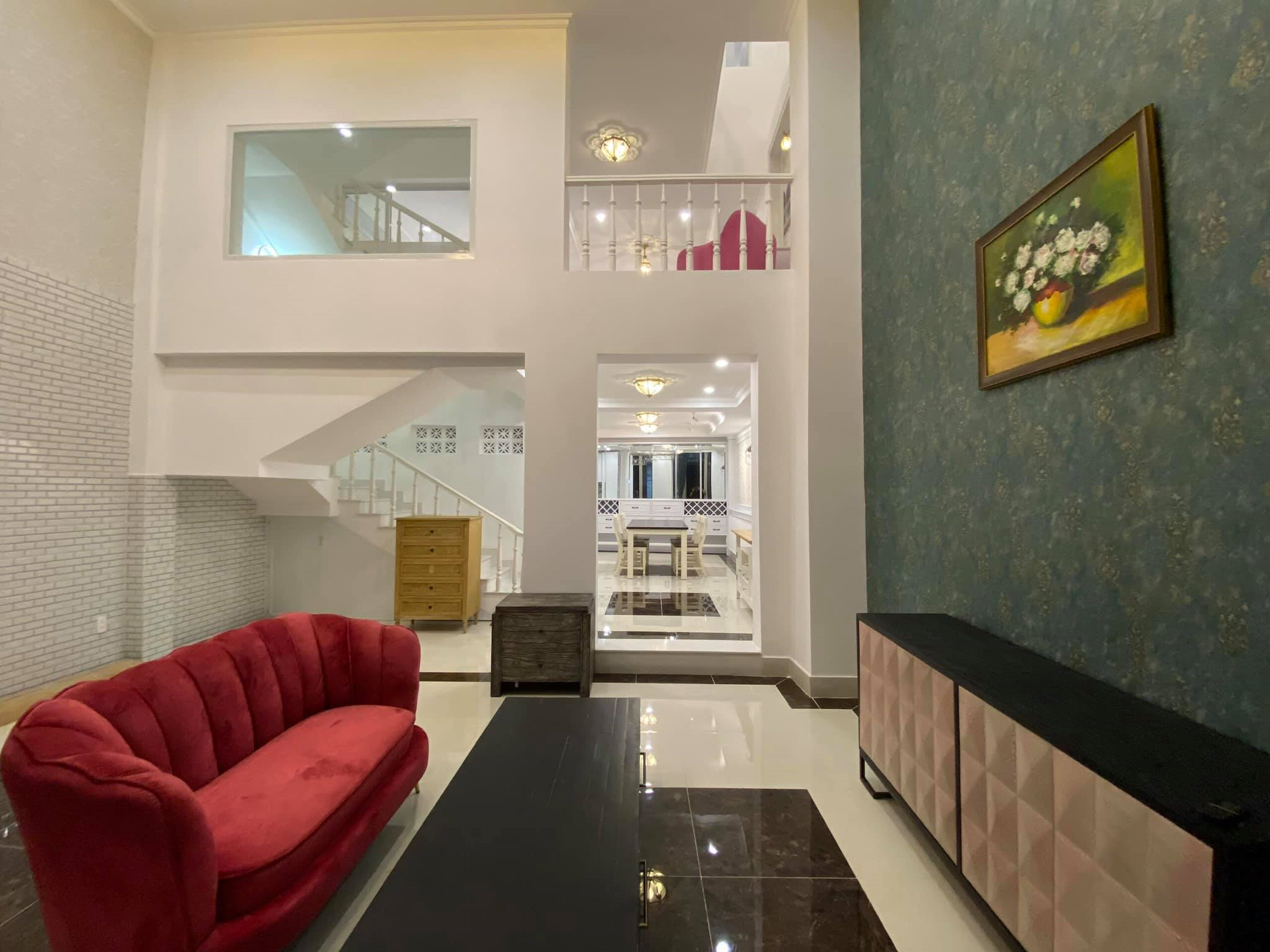 Nội thất cao cấp, vào ở ngay. Kế bên cung văn hóa và UBND huyện Nhà Bè, gần chợ và siêu thị Co.op Mart. Một trệt, một lửng, 2 lầu, sân thượng lớn, gara ô tô riêng, đường trước nhà 7m, sổ hồng (chính chủ).